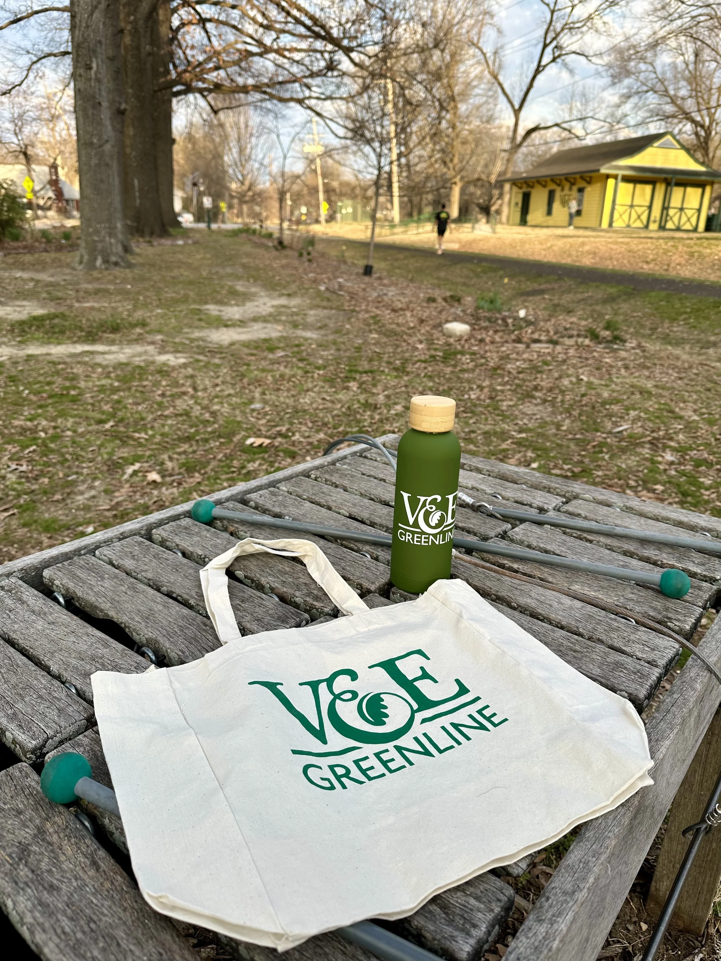 Support the V&E Greenline all year long with a $30 monthly donation (or a one-time gift of $360) and receive an exclusive “Trail Maintainer” gift bundle, including our double‑insulated drink bottle and new market tote. Featuring the V&E Greenline logo on a distinctive green background, the custom bottle keeps beverages hot or cold and is perfect for the trail, gym, or office. The market tote is ideal for shopping trips, picnics, or The Shell days—helping you show your neighborhood pride wherever you go. These limited-edition gifts are only available while supplies last, give today and take your place as a V&E Greenline “Trail Maintainer” to help keep it safe, green, and welcoming for everyone who walks, rides, and plays here.